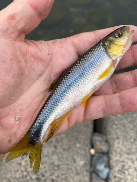 その後紅葉橋下流の瀬で数人のエサ釣り師がポツポツ釣っていたのでその下手に入りました。