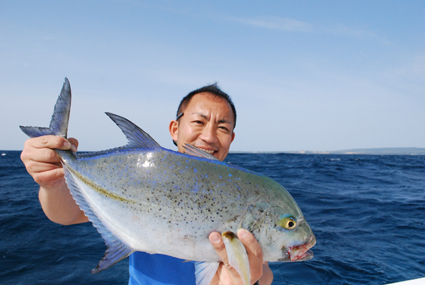初日は空港に到着してからの半日投げ続け、スタッフがカスミアジをゲット!