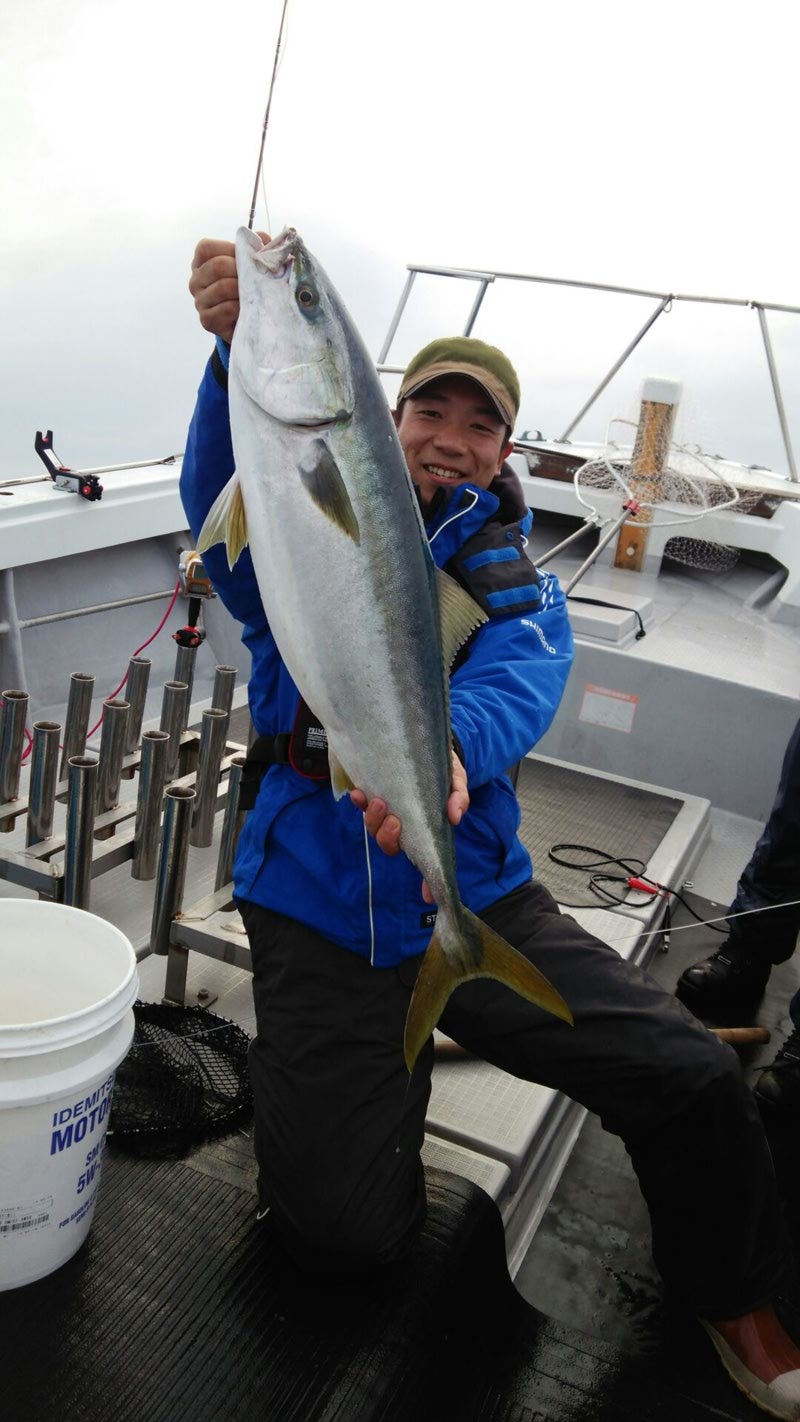 もともとはジギング船をやっている夏丸さんですが、最近泳がせを始めたとのことで、いざ出陣。ハリス100号、錘270~400号という未知の仕掛けで挑んできました(笑)当日は風も強くなく天気もグッド。4時出船の船に乗り、餌のサバを30匹程釣ってからポイントに向かいました。ポイントについてすぐ、良型のメジロがヒット!それから少し慣れてきたところから深さ100~200mの大物ゾーンへ。大物が来ることを信じてしばらくこまめに底を3m切ることを続けていると・・・ついに出ましたマハタ15キロ!!生で見るとすごい迫力です。みんなで叫んじゃいました(笑)帰り際に5キロのカンパチがヒットし、合計12時間の実釣終了。一緒に乗ったイチバンのお客さんと合わせるとその日の釣果は15キロのマハタ2匹にメジロ、カンパチが1匹ずつ。大満足の結果となりました。愛媛の夏丸さんとても熱いです!またお邪魔します!