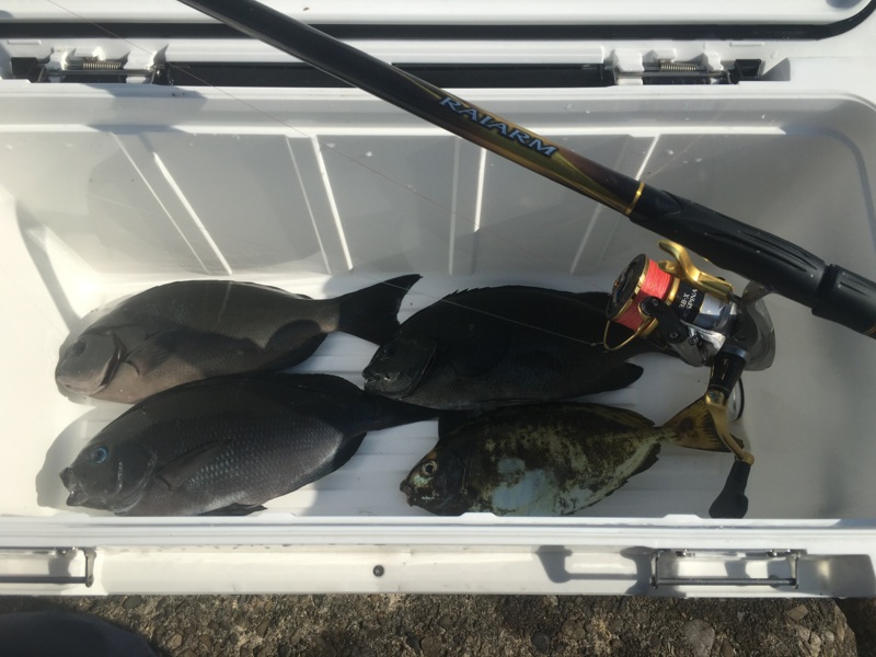 その後、35cmと32cmのクチブトグレ、33cmのアイゴを追加し、午前の部は終了しました!