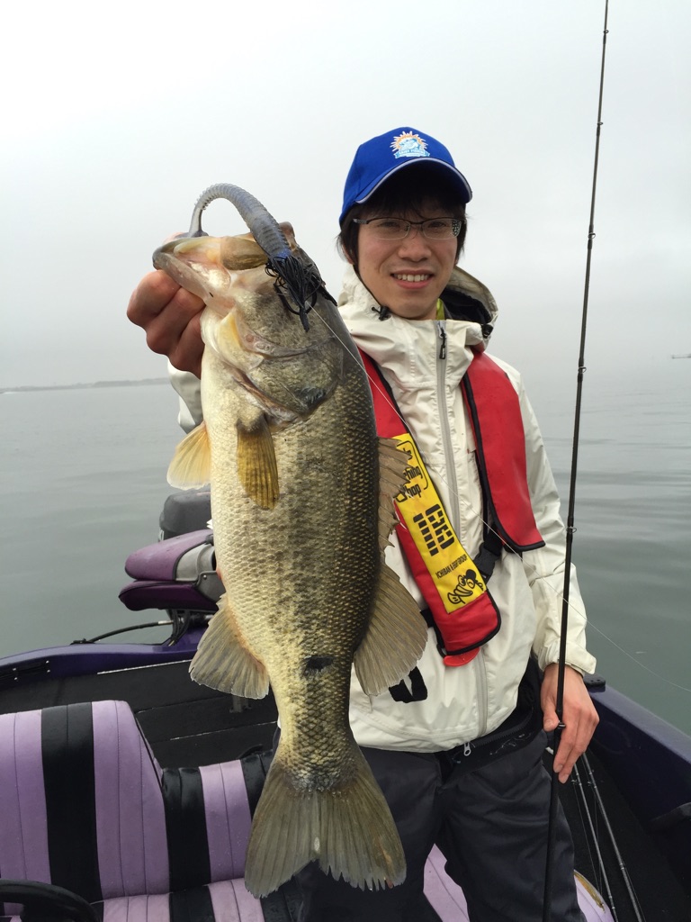 三艇に分かれての釣りで、北山田沖の水深2Mラインを攻めたスタッフは巻物やミノーで45cm頭に一人5~7匹。また夕方に風が吹き出したタイミングで西岸、天神川沖にてスコーンリグで45cm!この日はまずまずの釣果にて終了でした。