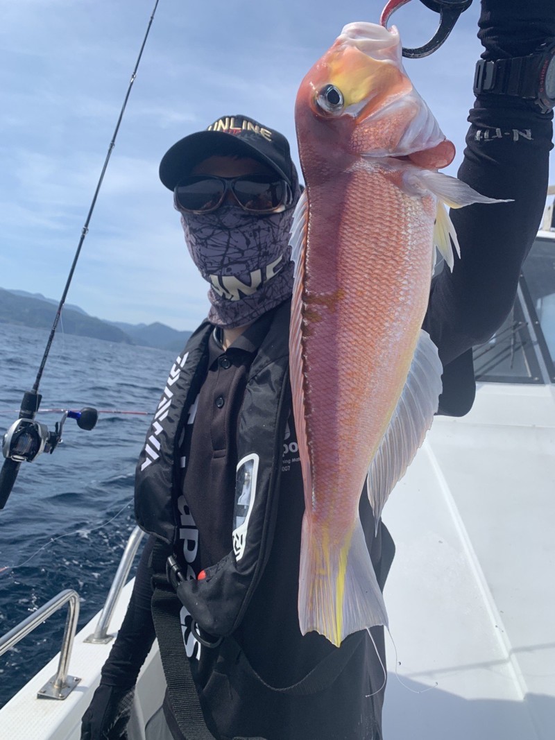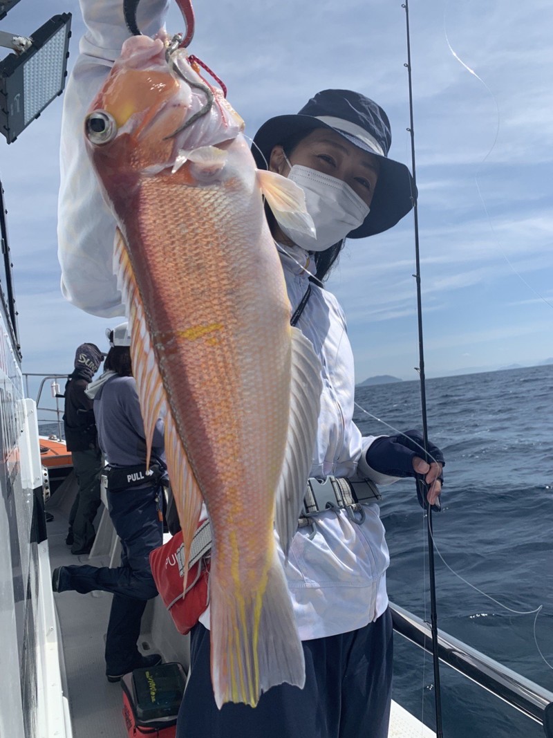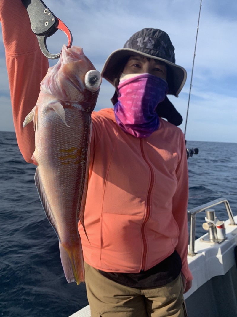 最初は中々アタリが来ませんでしたが、トレーラーをケイムラに変えると蓮子鯛がヒット。周りもオキアミを付けるとパラパラとアタリが出始めました。その時甘鯛が連続ヒットし、船内がプチフィーバーになっていました。