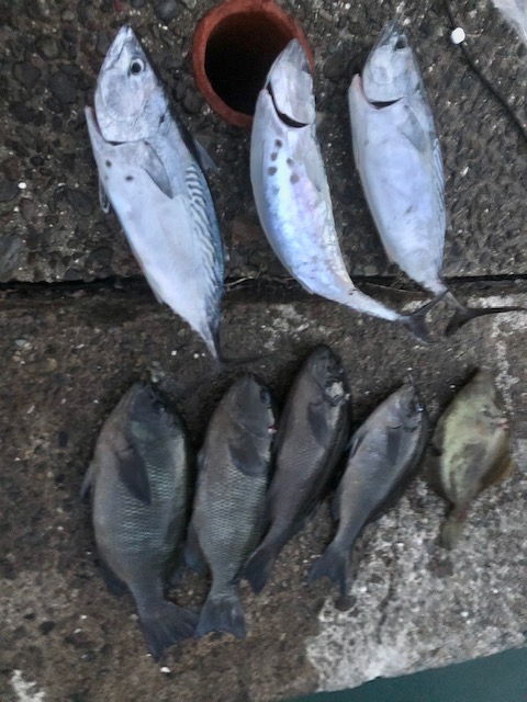 その後も小さいながらもグレが竿を曲げて楽しませてくれて、さらにヤイトガツオを2匹追加し、納竿しました。