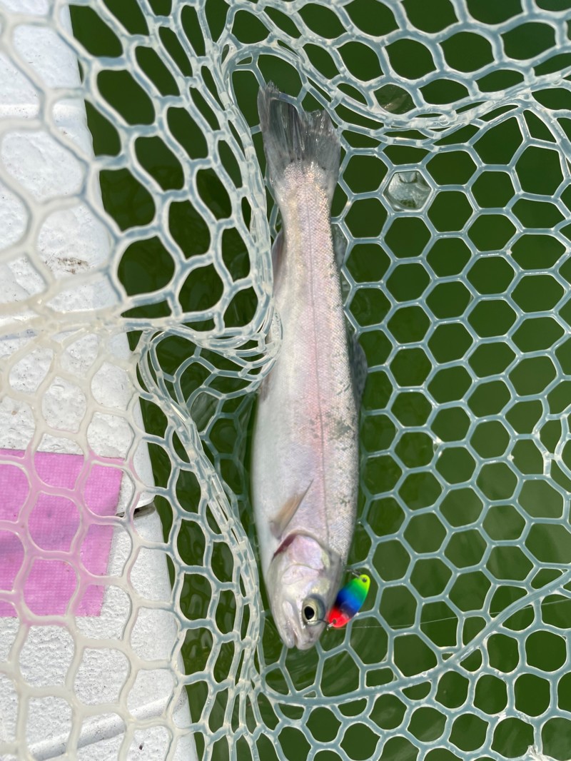 クリア系のカラーでアタリはあるものの中々のらずローテーションしながらようやく1本キャッチ!!