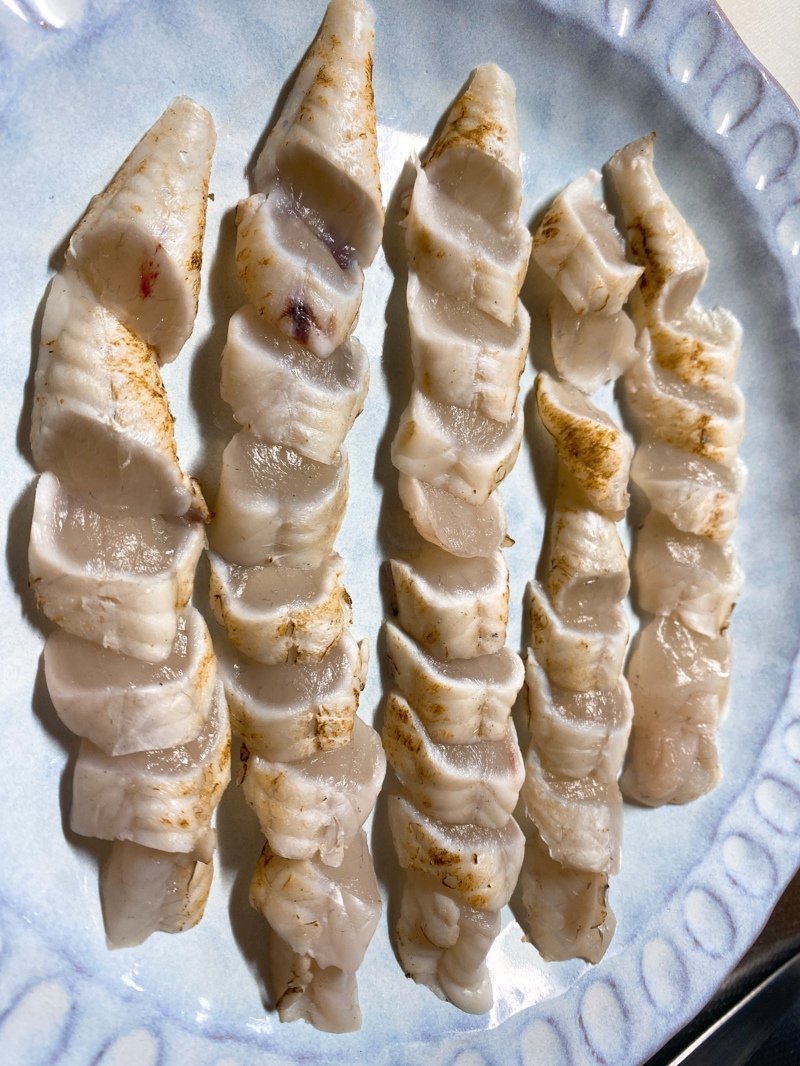 今回は皮を炙って3枚に下ろしてぶつ切りにして、ポン酢ともみじおろしで刺身で食べました♪