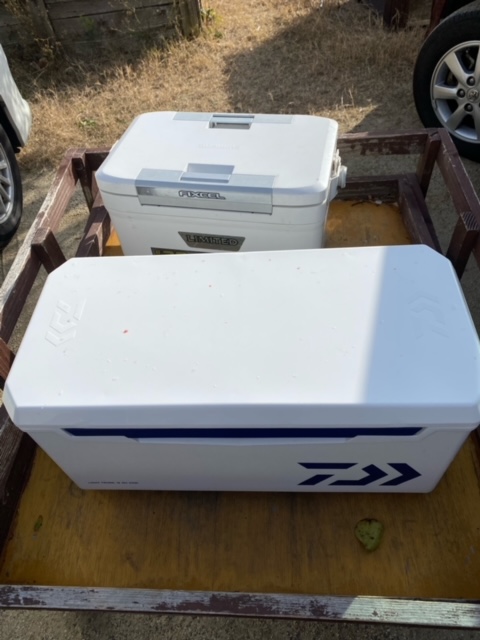 持参のエサは数種類。冷凍しておいた残り物(エビ・ミック・マダイイエロー・オキアミ)と太青イソメ・シラサエビ大粒・カツオ等....