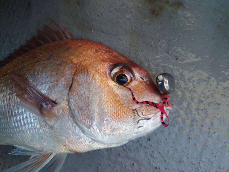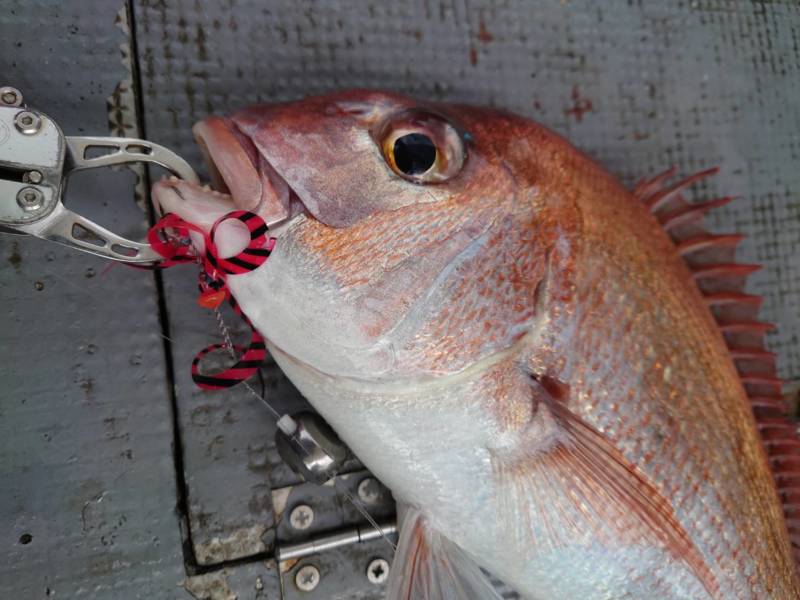 ヒットネクタイはどれも「海遊」のネクタイでレッドゼブラとレッドで、ヘッドにはタングステンの80gを1日通して使用していました。