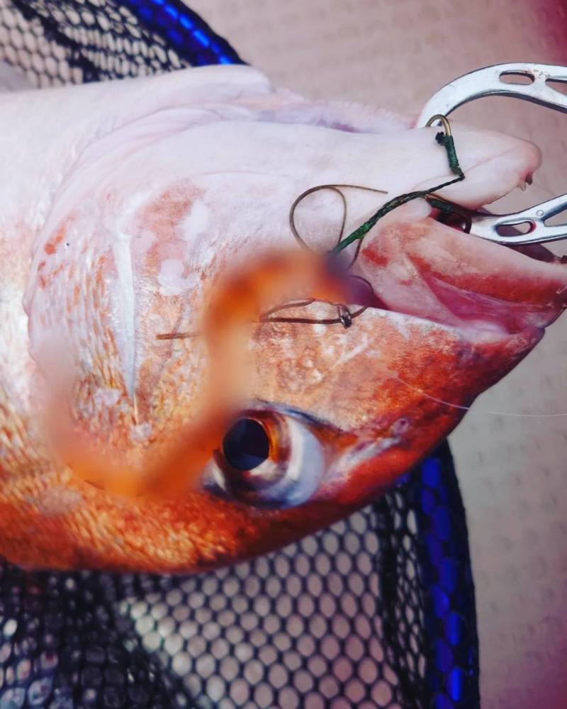20m程度の浅いポイントでメインのエサは海苔で、如何に海苔が流れてきているかを演出できるかがキーになります。