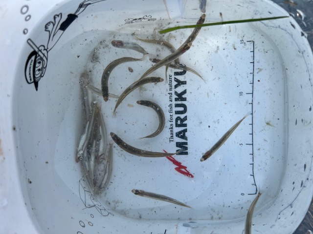 まだ氷魚サイズが多くこの時期の良型サイズ10センチ級は釣れません。