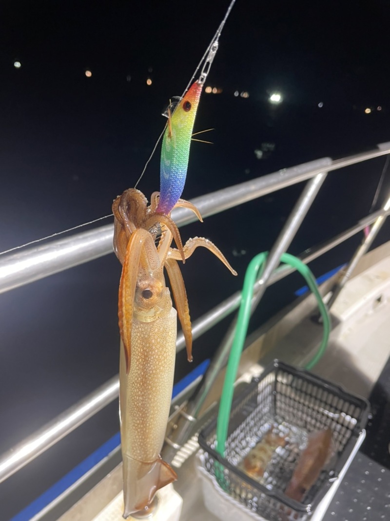 暗くなり、ライトが点くとアタリがかなり多くなってきました!しかしあがってくるのはスルメイカばかり、、