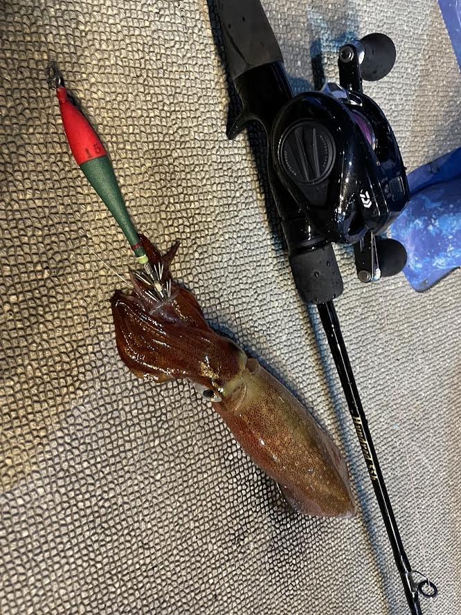 風が少し強く、船が揺られ、ポイントが安定しない。アタリがあっても追いアタリがない、船が動きすぎてメタルやスッテが全く安定していない。