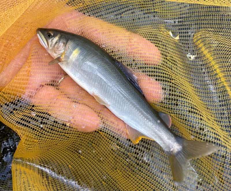 そんな中でもシーズン初期で小さいですが、18cmの綺麗な鮎もつれ初釣りを堪能できました。