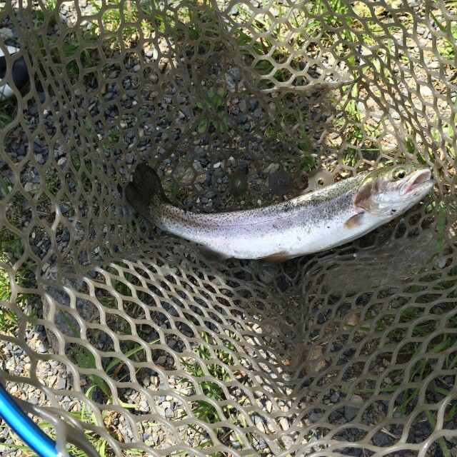 まずは、スプーンで挑戦。周りからバシャバシャと釣れた音が聞こえてきて、だんだんと焦る私。