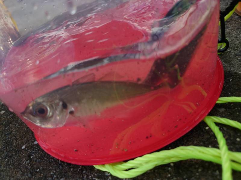 キスやハゼでも釣れないかと青イソメでチョイ投げを試してみましたが、豆アジと子サバの猛攻に遭う程多数の群れが入ってましたよ!