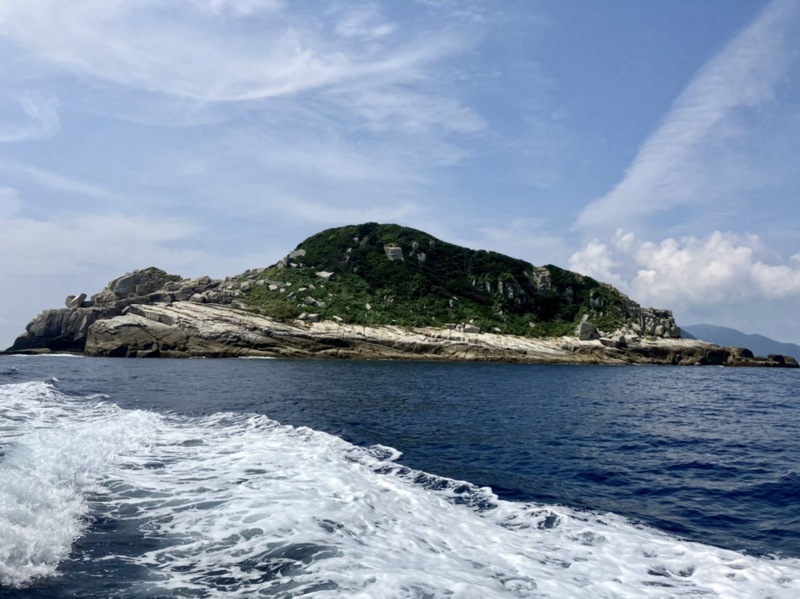 「今日の海況でキビナゴを流すならココ!」と船長がチョイス下さった磯は『幸島 ヒラバエの岡』。徐々にナダレた形状、沖は水深がある様子。底物、上物ともに楽しめそうな雰囲気でした。15時から21時まで竿を出せる半夜の時間帯でチャレンジ。