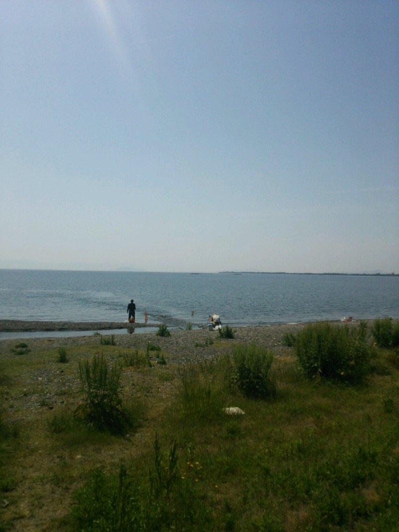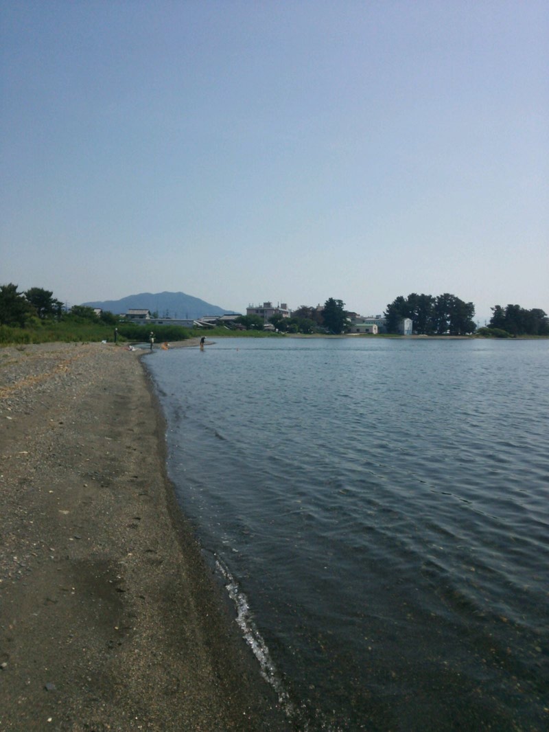 朝一番5時に知内川上流部、上開田橋下手に入ったが小鮎の魚影がなく移動。他のポイントを探し下流域まで調査したが、魚影が極端に薄かったので断念。なので今回は今津町サンブリッジホテル裏今津川河口の湖岸で釣ることにした。この釣り場は駐車スペース・トイレがあり女性や子供もOKでファミリー向き。近くにコンビニやスーパーもある。