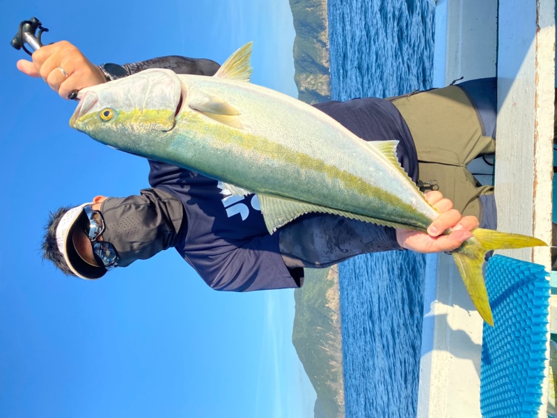 朝イチから探見丸を見ながらベイトの棚を確認し狙った棚でベイトを掛け落とし込むとハマチが食い付きまずまずのスタート。