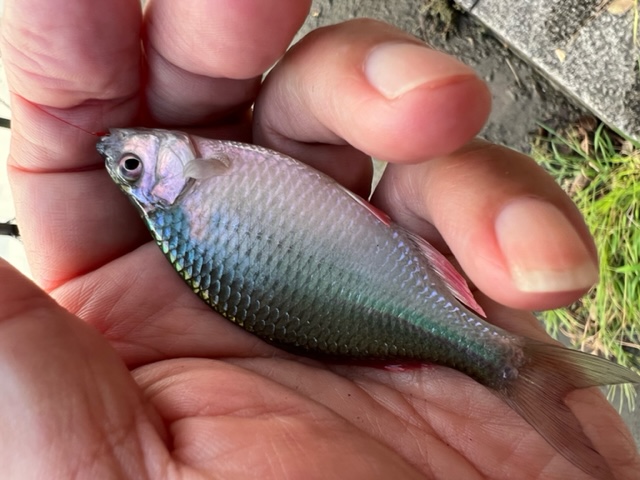 小鮒・鯉子も混じり20数匹の釣果。婚姻色バリバリのオスも数匹混じりました。