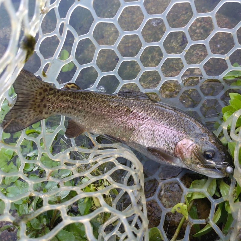 まずは鳥の羽のモフモフしたルアーから投げてみました。何投かしてみると一匹釣れました😊噴水になっている所の近くに落として 着水したらすぐにベールを返して巻く!!とアドバイス。ゆっくり巻いてみたり 早く巻いてみたり セニョールトルネードやプラグのクルトガもよく当たりがありました。カラーはカーキが特に反応が良かったです。午前中だけで5匹釣れました😅