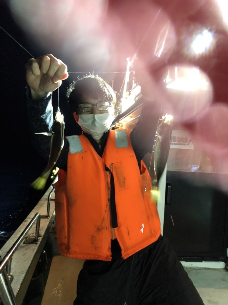 ポイント移動が功を奏したのか、オモリグオンリーで狙っていた大沼の方に大剣手前サイズのケンサキイカがヒットし、立て続けに2本とアオリイカを釣り上げていました。