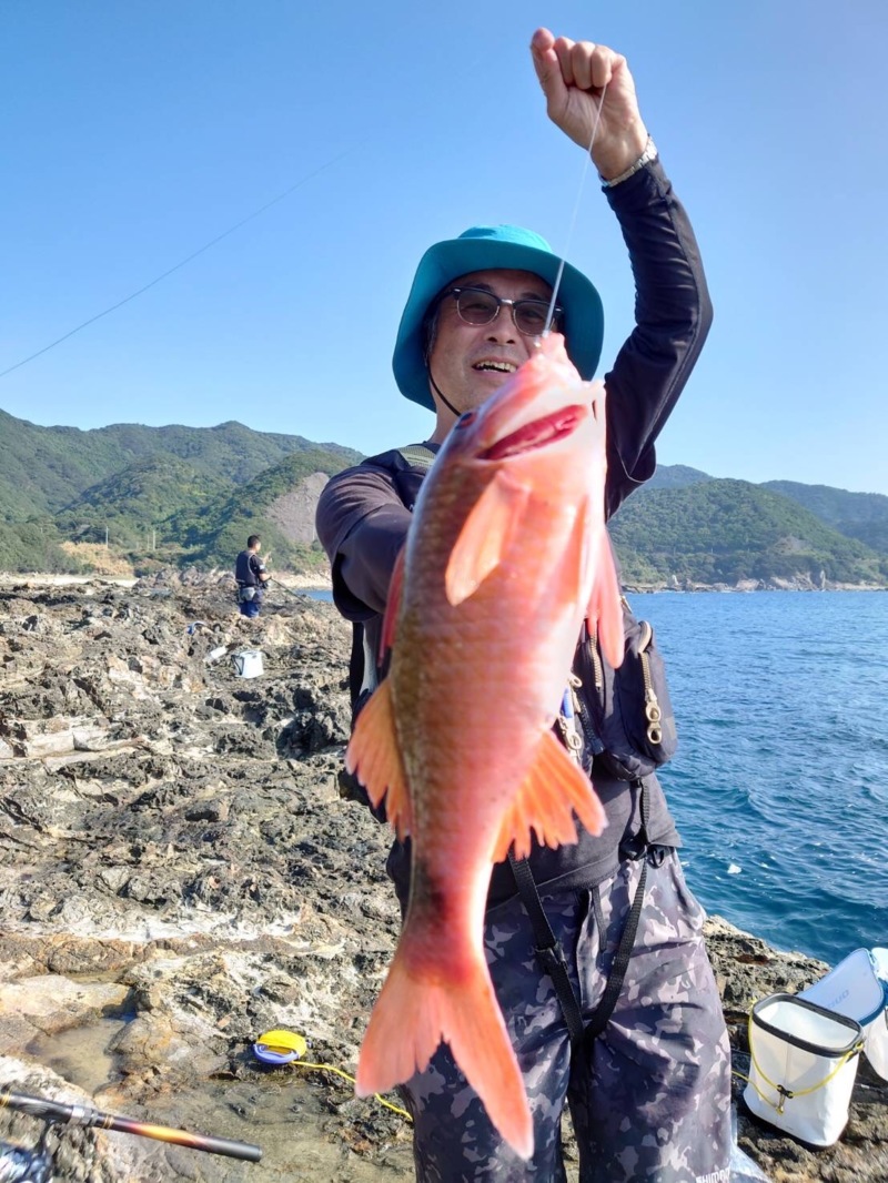 当日は8名のスタッフで三か所に分かれて磯に上がりましたが、コロダイ・オジサン・アカハタ・イスズミなど様々な魚が釣れていました。