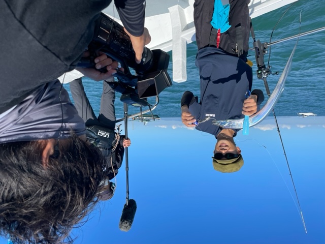 当日のロケは、泉南エリアの小島沖でのタチウオ釣りで、ヒロセマンやテツ川上さんと一緒に釣りを楽しみました。