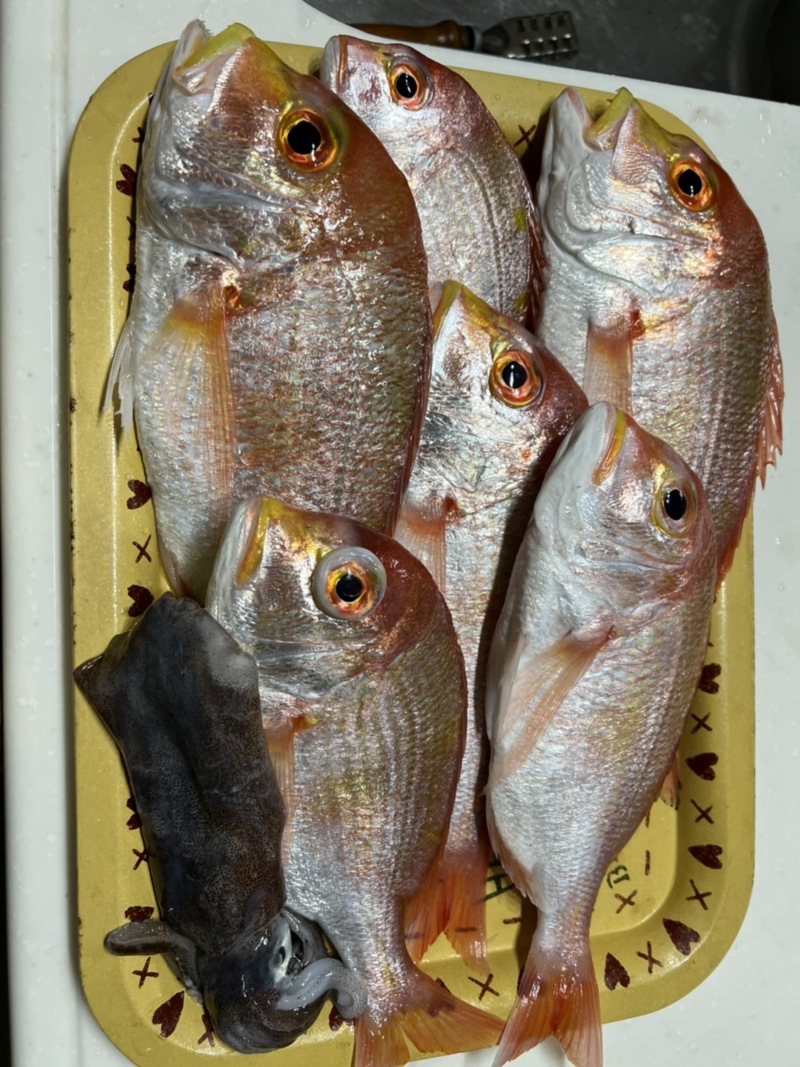 - 真鯛1匹・連子鯛10匹・アオリイカ8杯