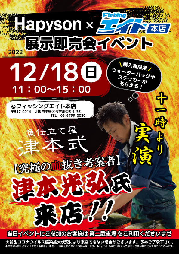 【エイト本店】【エイト2】ハピソン×津本式イベント | つり具豊富フィッシングイチバン・エイト大阪・京都の大型釣具店