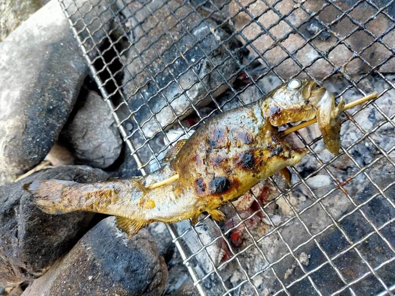 それでも気温は低く寒いので芥川の漁協にて炭(500円)を購入し、釣り場で焚き火をしながら釣りをしました。焚き火で釣った魚を食べながらかつ、寒さをしのげるのは最高ですね!!