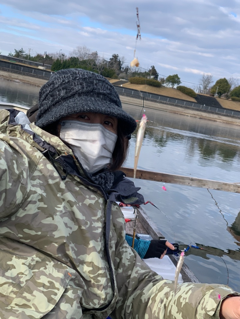 感染防止対策を行い、青野ダムにワカサギ釣りに行ってきました。