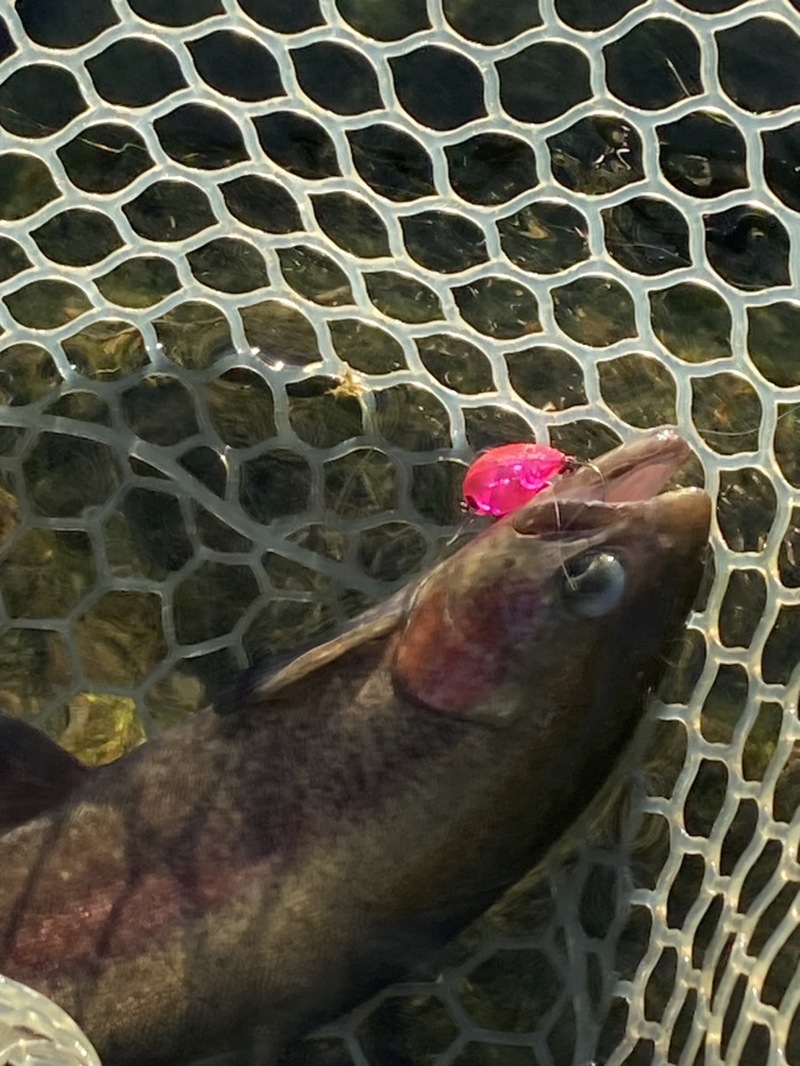 まだチャンスがあるとルアーを投げ続けるとついに私にもイトウがヒット‼️
