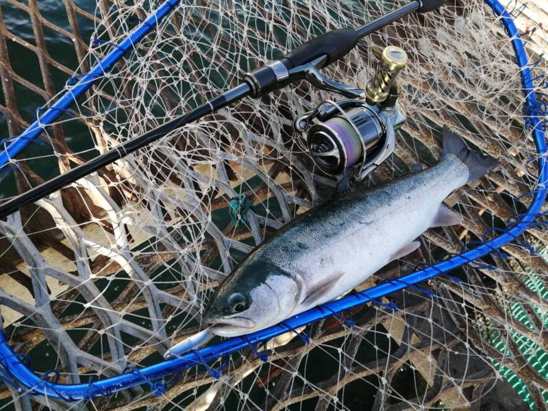 大阪府泉南の小島養魚場にてライトゲームでトラウトサーモン釣果
