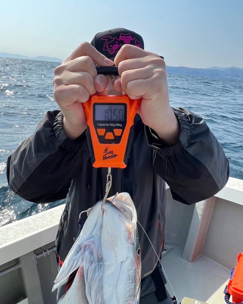 ジギング初挑戦の梅田スタッフ中橋は10.6キロと9キロオーバーと2本釣りました!!