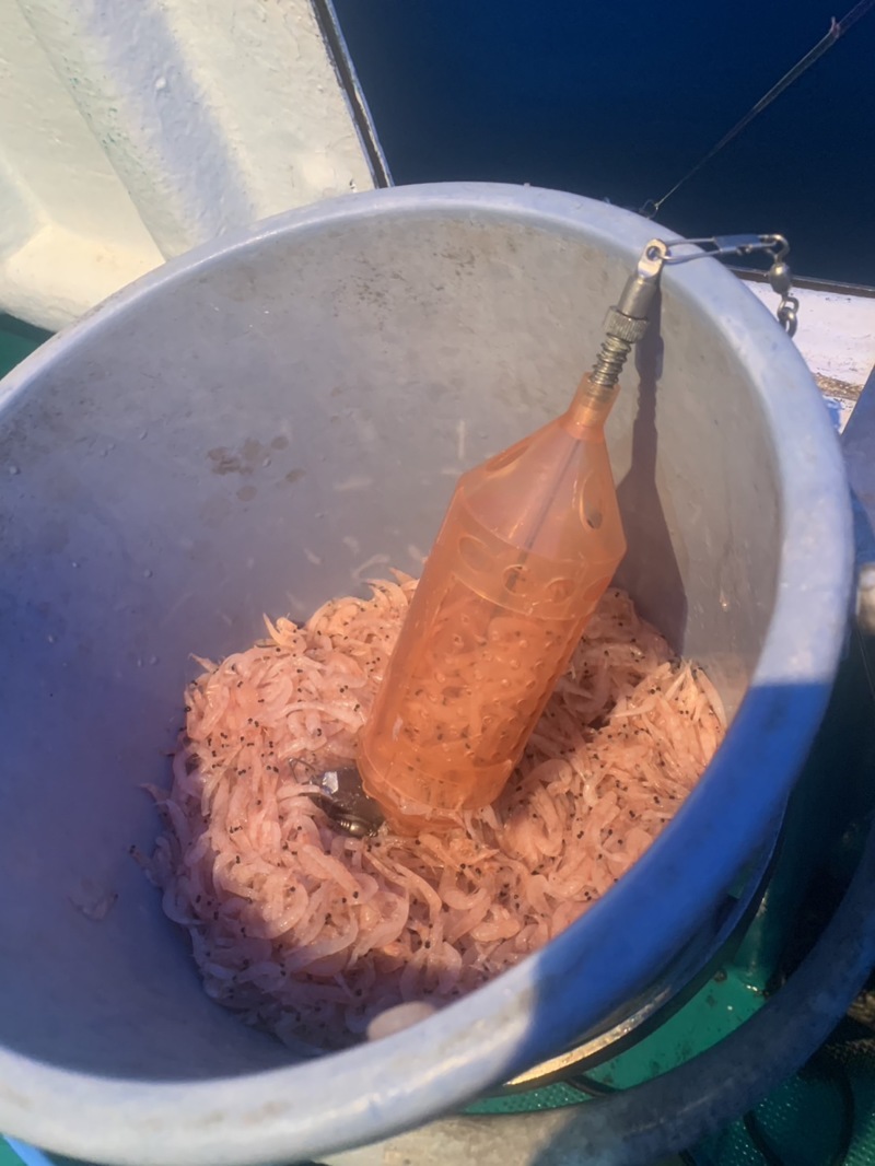 5月6日和歌山見老津沖に春のイサキを狙いに行きました、前日にキンムロアジが釣れている情報を頂いたので、プラスで釣れれば良いお土産なるだろうと楽しみに準備をします、天気予報では午後から雨、しかし天気も持ち、晴れ間も見える感じでした、うねりが入りましたが釣りにはあまり影響はありませんでした。カゴにオキアミを半分入れて、サシエサには浜市のGグリル遠投3Lをセットします、船頭の指示で30mから35mラインを流します。PEラインは3号、クッションゴムは入れてますが、ドラグを気持ちゆるめで仕掛けが絡まないようにゆっくり落とします、ひと流し目から35cmのイサキをゲット、その後食い渋りでウメイロポイントへそのポイントではウメイロはもちろん、ヒメダイや尾長グレ、キビレカワハギなど美味しい魚を次々とゲットしました、ウメイロは41cmありました、最近ではなかなかのサイズとお褒め頂きました、次にキンムロアジのポイントでは、マサバに邪魔されながらもキンムロアジをゲットしました。見老津の海は何が釣れるか分からない所も魅力の一つです。今回は正栄丸さんにお世話になりました。