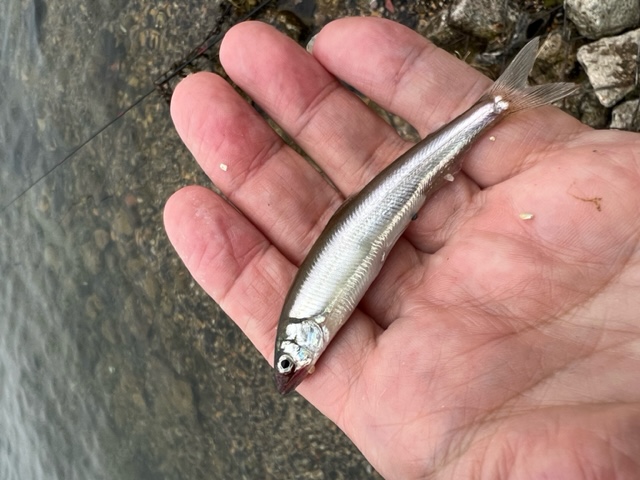 朝7時頃から浜に入りました。日曜日なのに釣り人も少なく小鮎の波紋も少なめ。