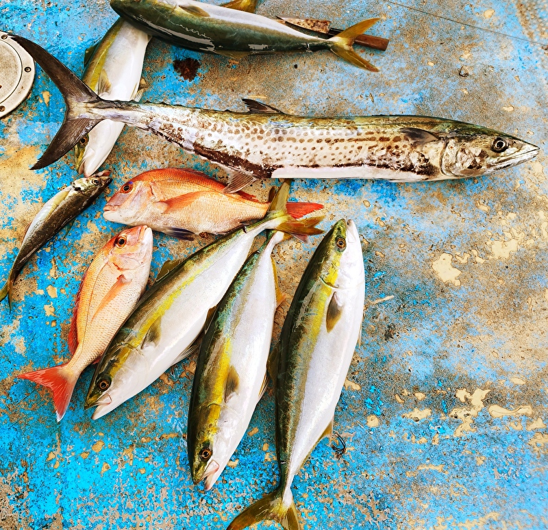 イワシが掛かり、底から少し切って置いておくのがオススメで、底ベッタリだとガシラが多く、少し底から上げるとヒラメやアコウが狙えます。