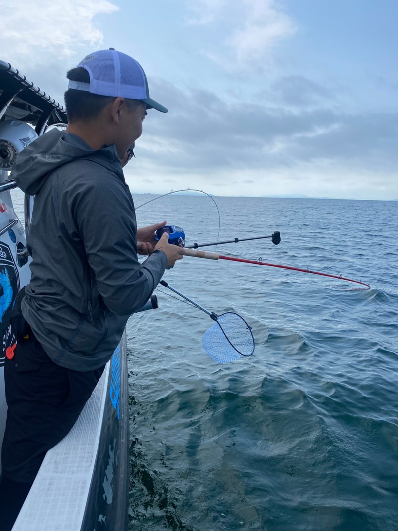 この日は、前日の雨の影響で濁りが残っており、通常に比べると喰いが渋い状況でしたが船長の経験により水深の調整、ルアーのローテーションを行いコンスタンとにアタリがありました。