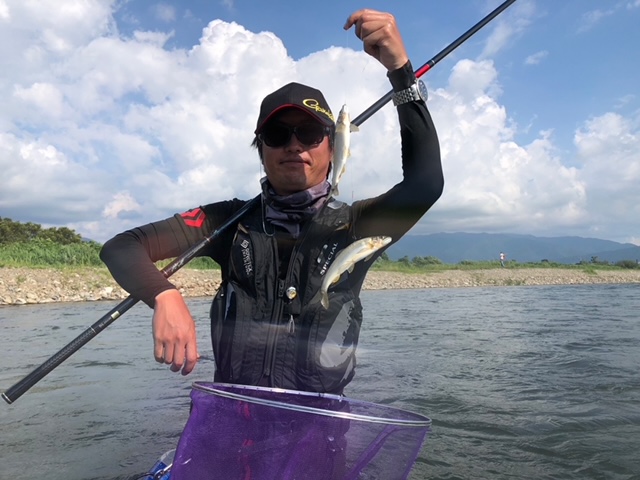 釣果はサイズは20cm前後が多かったですがいいポイントに仕掛けが入ると目印が気持ちよく飛んで、強い鮎の引きを堪能することができました。