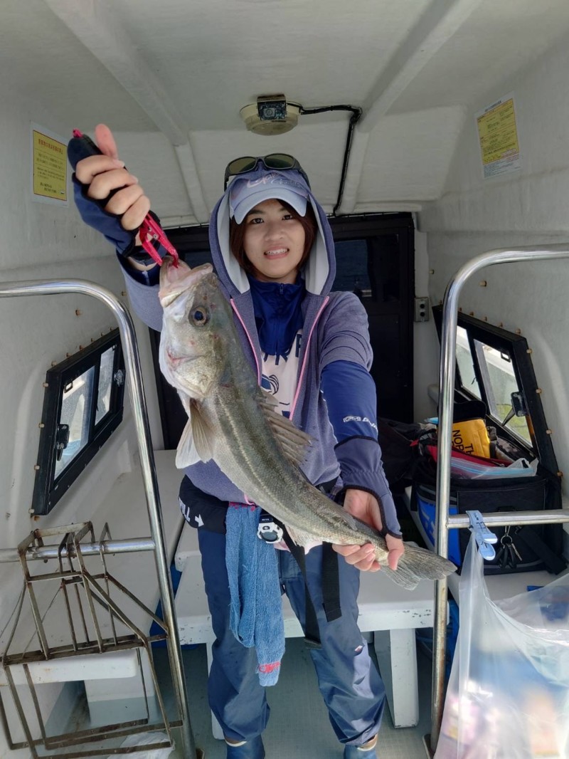 船長がポイントを大きく変え、どてら流しに変更するとの事でしたので、暫く移動です。ポイントが変わり、私も仕掛けを1本鈎から2本鈎の仕掛けに変えました。下鈎は活きアジ、上鈎はホタルイカを付けました。底まで仕掛けを投入するともぞもぞとしたアタリが続き、合わせてみると20㎝くらいのガシラが釣れました。その後もホタルイカを付ける度にガシラが当たってくるので、仕掛けも1本鈎に戻し、アコウ狙いに変えました。その後は船中でポツポツとアコウ、ガシラが釣れました。後半では同船された方はタイラバ、インチクをしていたのですが、なんとスズキを上げていました。珍しい事もあるんだなと思っていると久々に大きく竿がしなりました。あげている途中にあまりにも竿をたたくので、鯛か青物だと思いましたが、あがってきたのは70㎝程のスズキでした。初めてスズキを釣ったので、驚きと嬉しさが混ざった気持ちです。