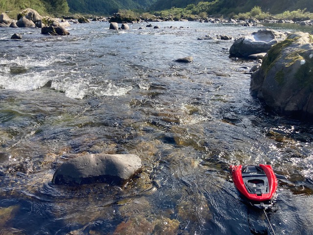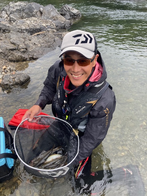 現地の友人からは『中流域は減水と連日の火振り漁の影響で20cmから25cmが20匹~40匹程度の釣果で週末は火振り漁も最後なのでもっと釣れなくなるからオススメ出来ないよ』『上流域も減水がひどく、一発は出るかもしれないがオトリが変わらないかなり厳しいよ』と言われましたが10月16日から中流域は禁漁となるため行けるうちに行っときましょう!と決断!相談して上流域に入川することに。