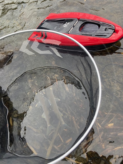 かなりいいサイズの鮎も掛かりましたが細身なので尺は無いだろうと釣った鮎すべておとりに使い昼食までに二人とも15匹前後と嬉しい誤算!