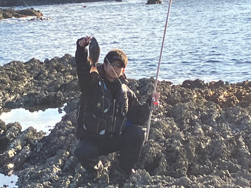 本命のグレはイスズミと同じようなところにいると信じ、投げ続けると、釣れたのは手のひらサイズのグレ!