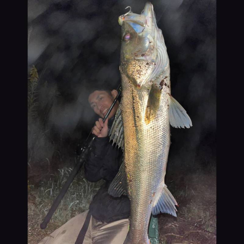 後藤(圭)の2キャスト目、着水点でベイトが跳ねたことを確認、直後もリトリーブを続けるとこれまでとは異なる手応えの個体がヒット!この日最大のコンディションの良い72cmの個体をキャッチしました。