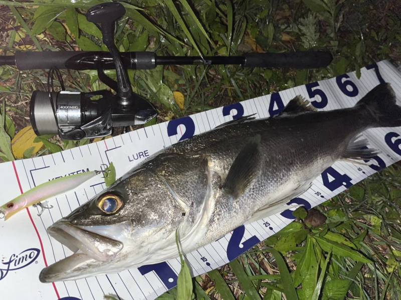 その後もバイトはありますが、私にヒットするのはセイゴクラスばかり...最後にコスケ110F(ima社)にて、なんとか63cmの個体を追加することができ、納竿となりました。