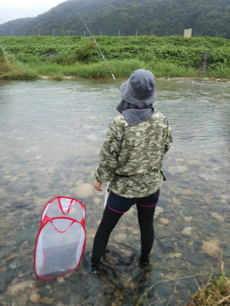 台風後の7/22(水)天候安定していない中釣行。雨は降ったりやんだりの状態。若干増水気味でテレメーターは+25センチ。笹濁りの中上流部の上開田橋の上手に釣り座を構える。水深20~30センチのごろた石が点在するチャラセで川初心者の女性も200匹超の釣果を出す。まさにマシンのように釣りまくっていました。浅瀬なので底ずるシンカー0.2号で流すたびに毎回のアタリ。あたりが多すぎて3本針より2本針の仕掛けのほうが効率が良かったです。台風で下流域のやなが空いていたので銀ピかの小鮎が多く遡上していました。