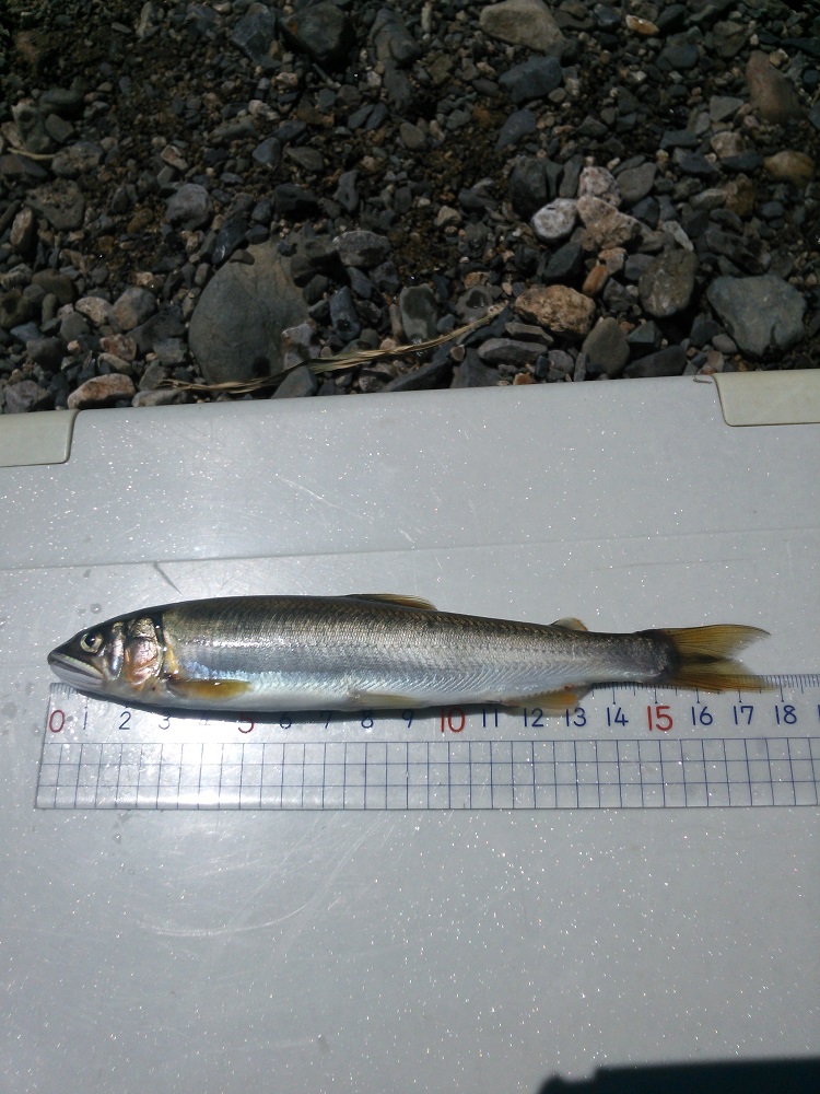 知内川メタセコイア並木前に5時集合で釣友5名と京都店佐伯店長、春瀬工芸の太田氏も参戦しての釣行会。佐伯店長は出勤前の釣行。テレメーター+15センチの絶好の水量。水色もよく小鮎がたくさん跳ねている。メタセコイアの並木前の堰堤下で京都店佐伯店長が春瀬工芸の太田氏にアドバイスを受けて入れ食い。8時までの釣果は軽く100匹以上。他の釣友も初めから猛ダッシュで超入れ食い。その中18.2センチが飛び出した。全体的には遡上したての15センチまでが大半。雨が降るたびに知内川の水色は小鮎の魚影で染まっていく。