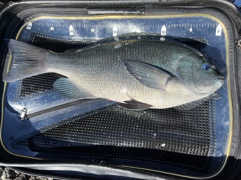 そんな中でしたがウキやガン玉、ウキ止めの位置変更、どう頑張っても風にとられる道糸の管理など丁寧な釣りを心掛けて打ち返し、何とか45cmと39cmの口太をキャッチできました‼️