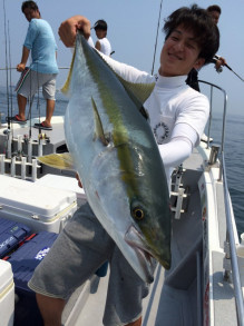 5分弱格闘のすえ、あがってきたのは80オーバーのブリ!!