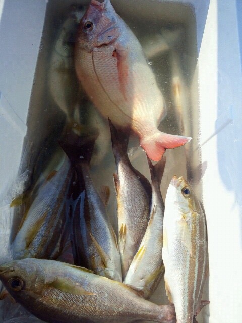 朝5時に出船。朝一番の時合からイサキやアジが連発。