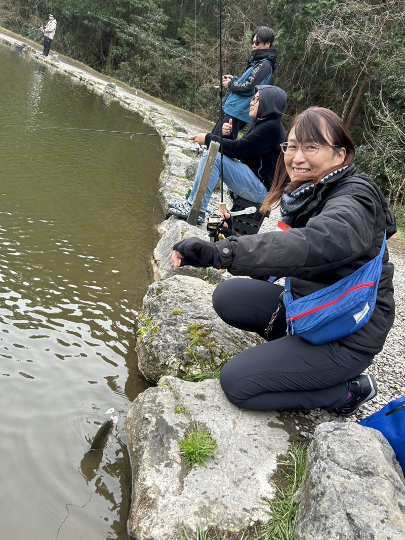 お昼は併設されたカフェで温かいご飯をいただき、午後からはルアー釣りに挑戦‼️